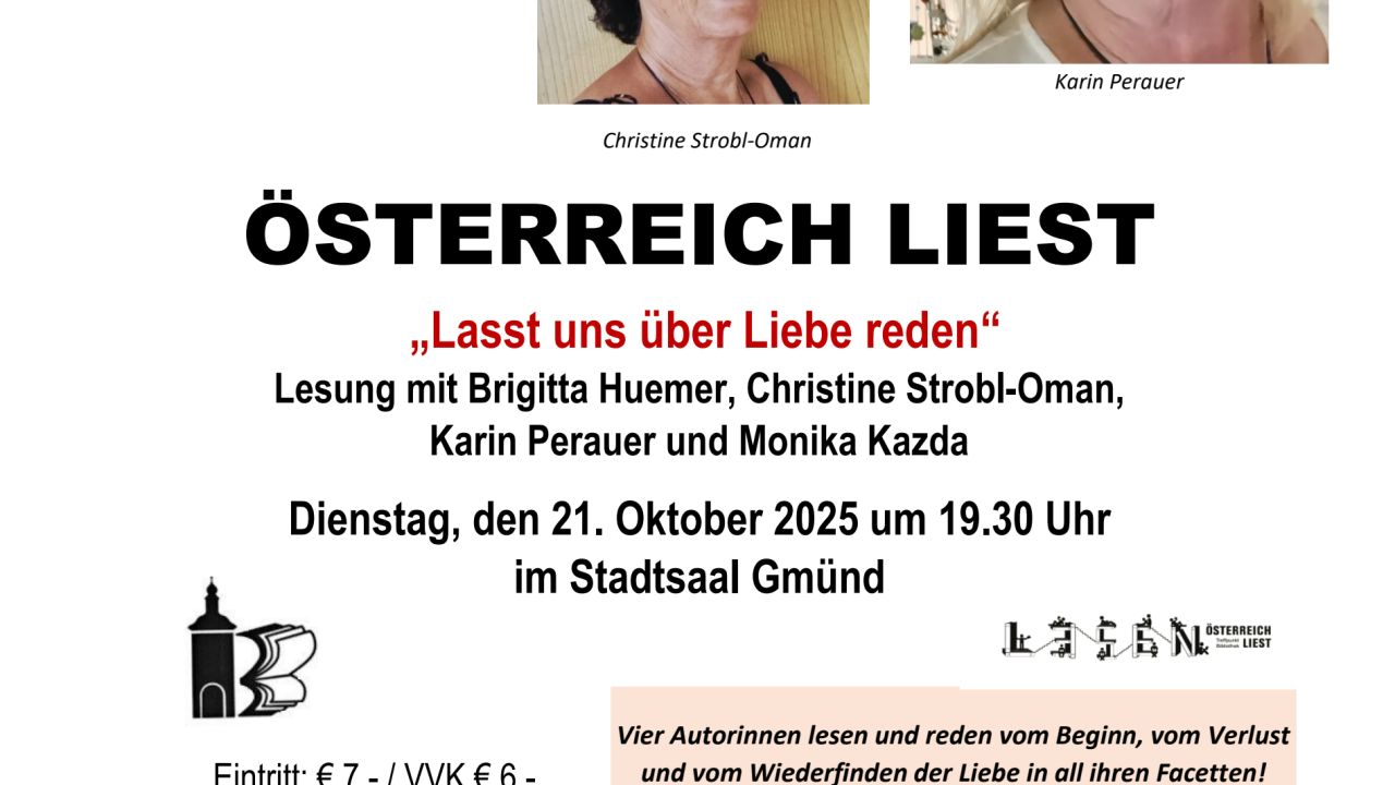 "Österreich liest" am Dienstag, den 21. Oktober 2025, 19.30 Uhr